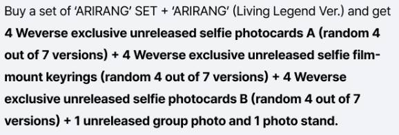 BTS - ARIRANG - WEVERSE EARLY BIRD SET OF 3