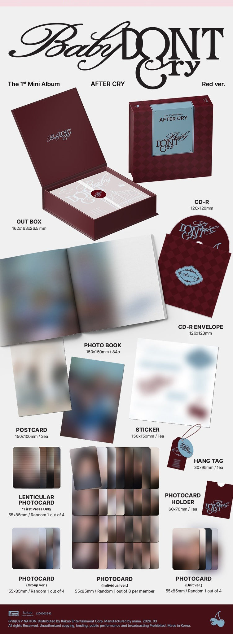 - Individual PHOTOCARDS: 55 x85mm /Random 4 of 32 (Random 1 of 8 selected for each member)