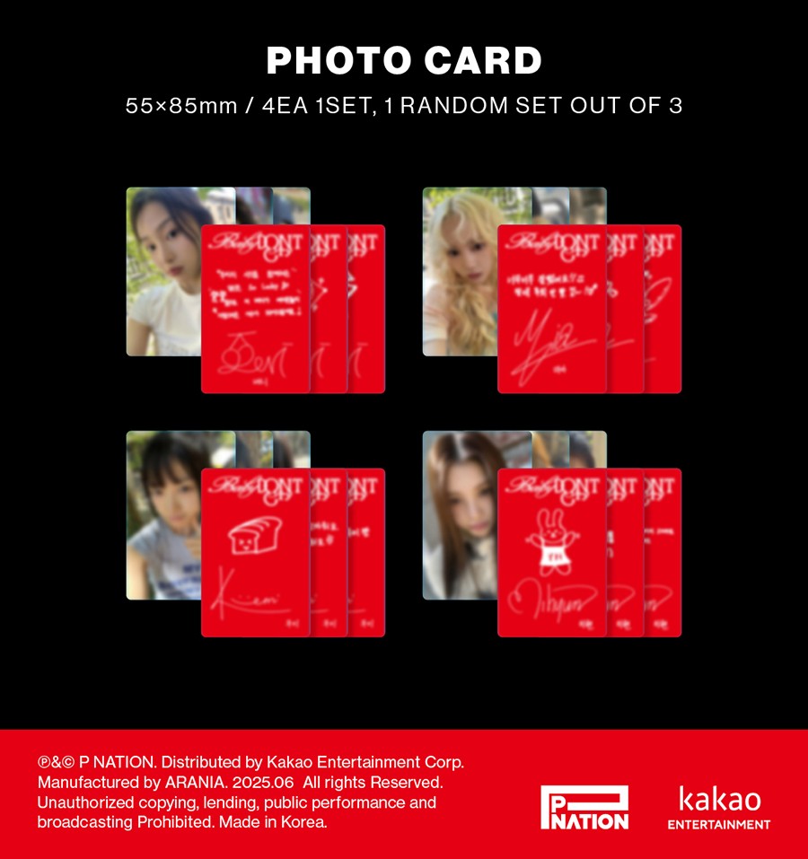 - PHOTO CARD : 55 x 85mm / Random 1 out of 3 Sets of 4 Photocards