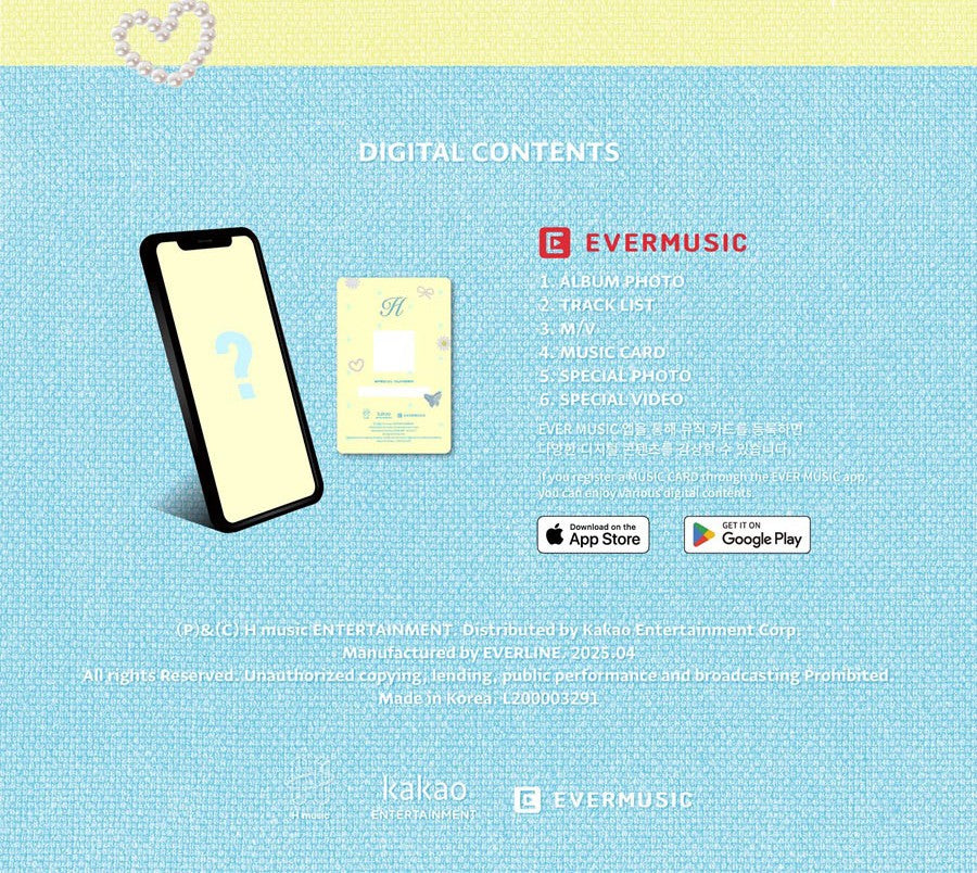 - MUSIC CARD (QR PHOTOCARD): 55 x 85 (mm) / random 1 of 5 (different for each version)